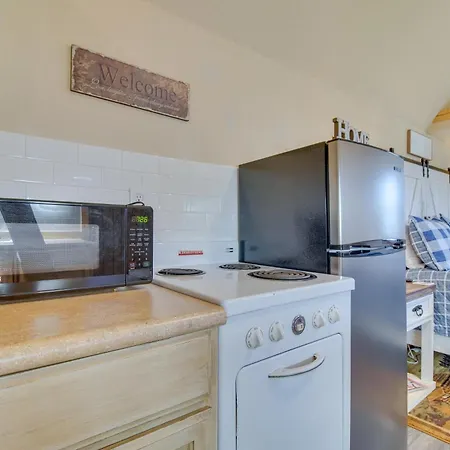 An equipped kitchenette with a fridge, a toaster, and a cooktop is available as part of Countryside Tiny Home In Cameron About 5 Mi To Poteau! apartment's self-catering amenities. The presence of hiking helps guests diversify their active leisure.